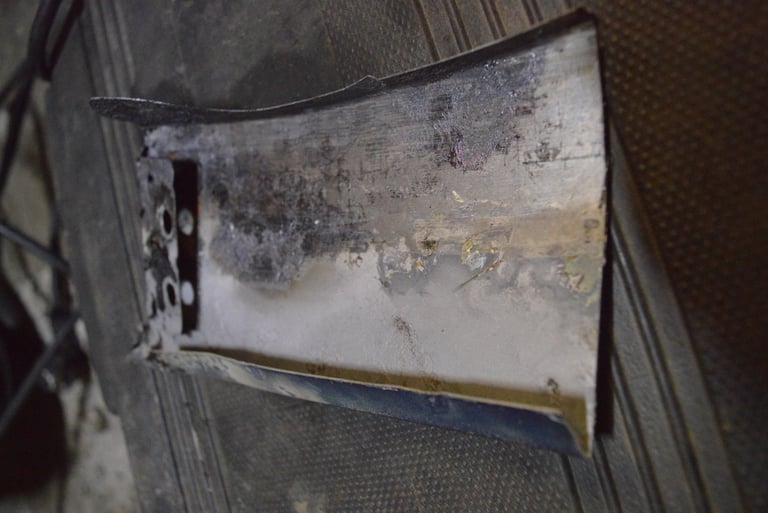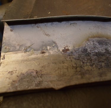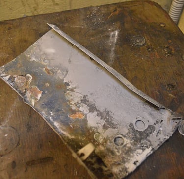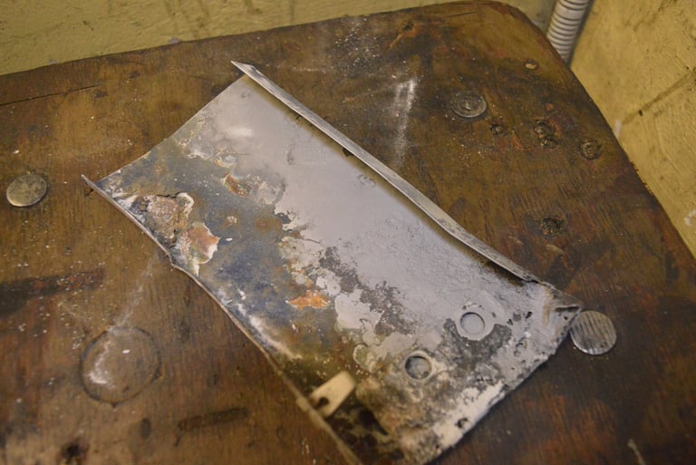Eksperimentui buvo pasirinkta surūdijusi automobilio sparno apatinė dalis. Detalė padalyta į dvi lygias zonas: