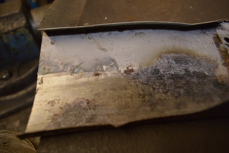 Pusė skardos buvo išsmėliuota, kita pusė – nuvalyta lazeriu, išlaikant identiškas pradines sąlygas tolimesniam stebėjimui.