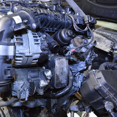 BMW F30 variklio ir komponentų nuvalymas: purkštukai, kondicionieriaus siurblys, aušintuvai